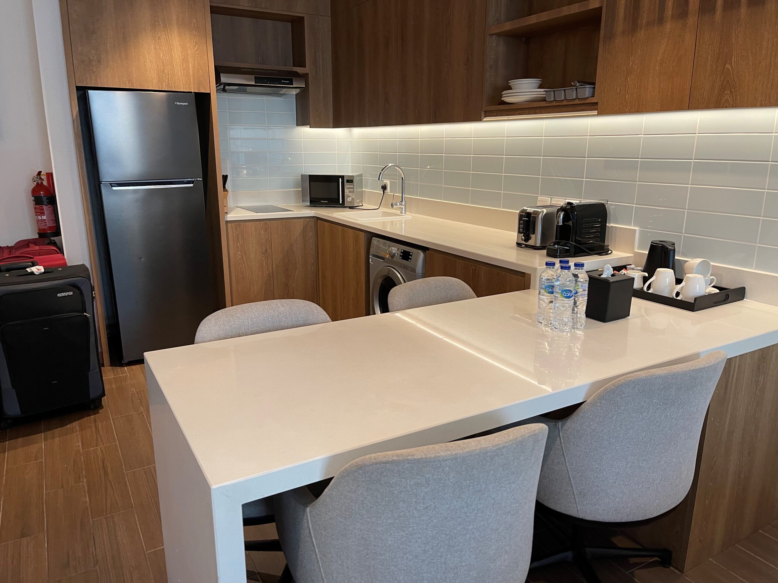 We had infants with us, so we needed a suite with kitchenette. We chose Element Al Mina, Bur Dubai (more on the location choice down below). Dubai has rooms of all sizes, budget and types – ultra luxury to cheap hotels, everything in between. We booked hotel ourselves. Elements belongs to Westin, Marriott family of hotels. The room itself was luxurious but we encountered several issues throughout our stay. We had to pretty much call service everyday; the water wasn’t hot enough two days, clothes washer broke, AC unit was leaking occasionally, hotel was running short of towels! A very mediocre experience. However the breakfast was included and it was great, chefs always have Indian food in the kitchen, so if you don’t like what you see in the breakfast buffet you can always ask and something delicious comes out. Things to look for when you book the hotel –